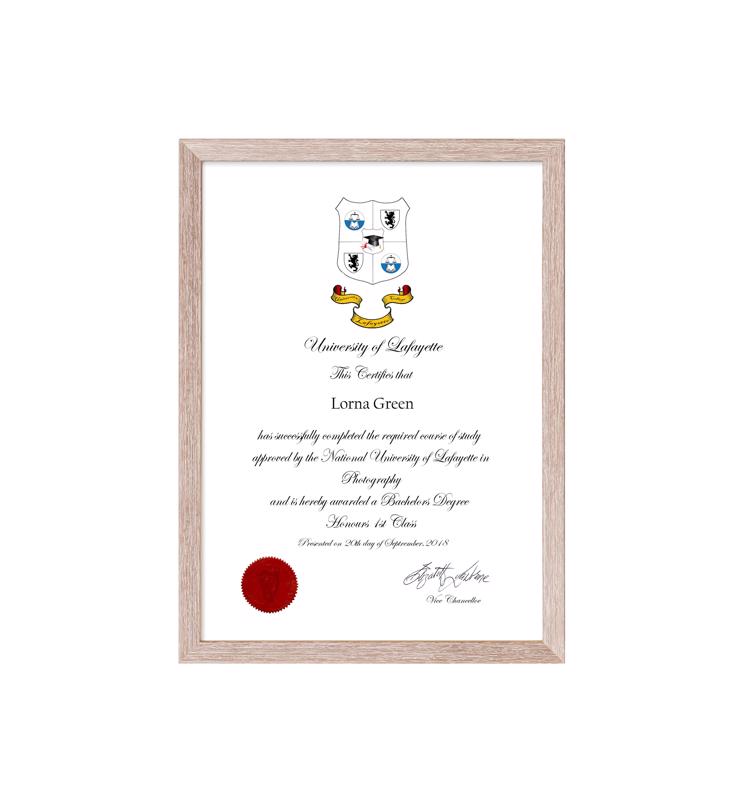 Certificate frames available to fit your degree in several sizes in biscuit.